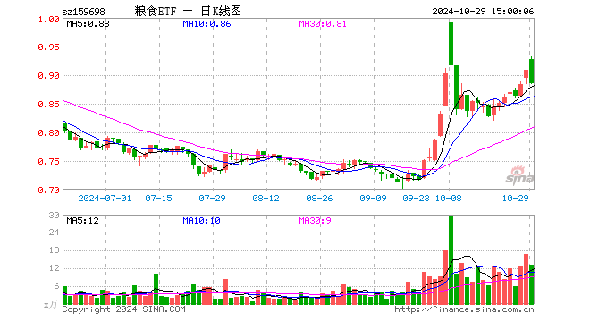 10月29日,粮食ETF(159698)收盘跌2.53%,成交额1184.70万元。