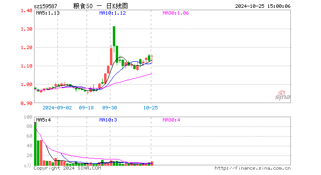 规模方面,截止10月24日,粮食50ETF(159587)最新份额为2144.70万份,最新规模为2416.65万元。