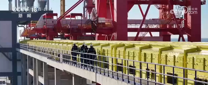 大连太平湾港口有限公司项目建设中心项目经理王育东介绍,总共有3个泊位,包括一个7万吨的装船泊位、一个7万吨的卸船泊位和一个12万吨的卸船泊位。配备了装船机、卸船机,全部实行无人化控制。泊位水深从15.7到17.2,满足大型船舶的靠泊。